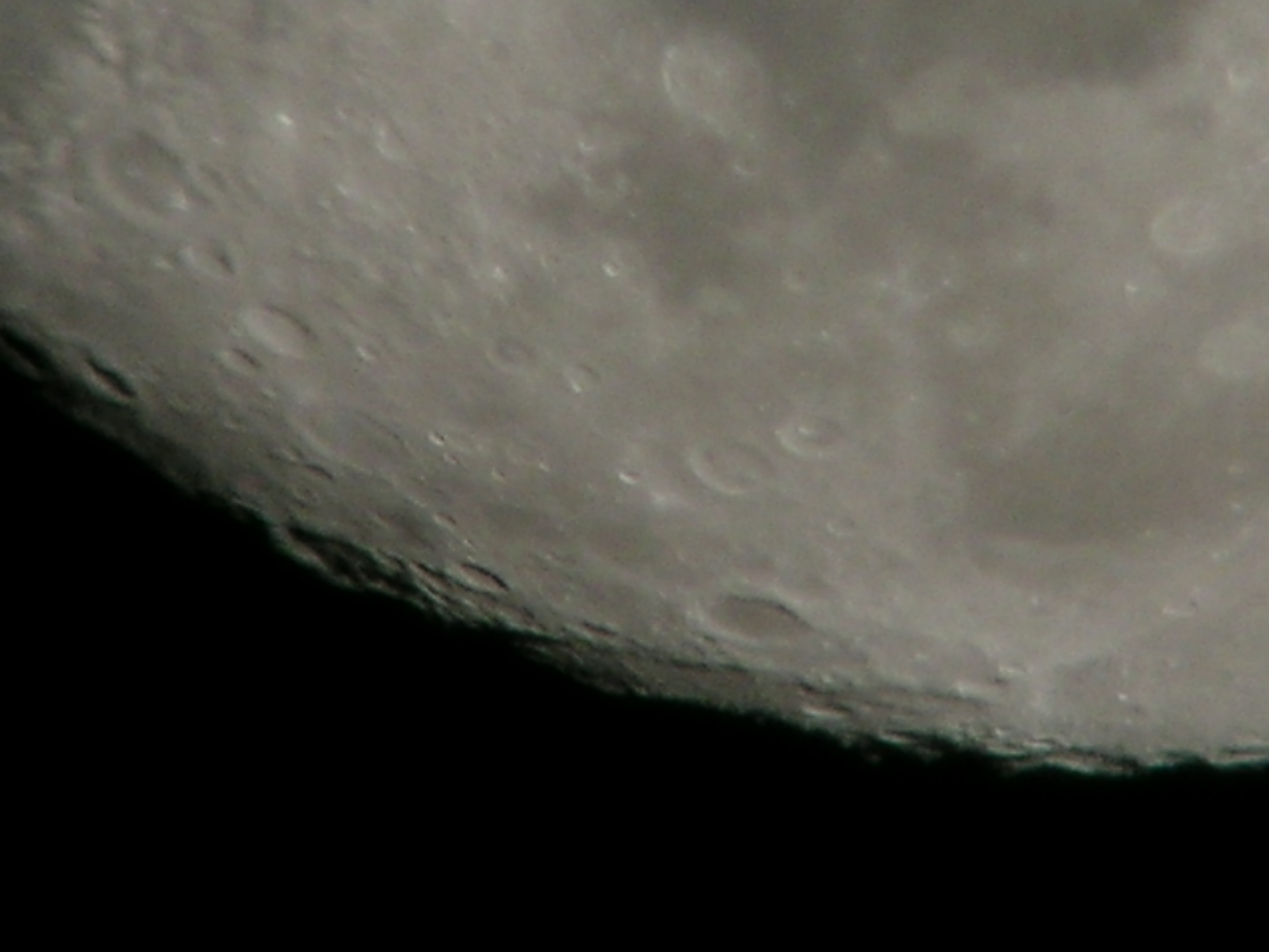 Wenn ich durch mein eigenes Teleskop schaue (das Foto oben hab ich selber gemacht) sehe ich, dass am Mondrand die Berge/Krater einen viel längeren Schatten werfen.