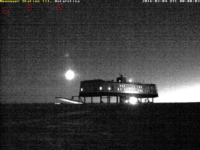Mr. Kleespies behauptet auf seiner Website, dass auf einem Webcam Bild bei der Neumayer Station der Grosse Wagen zu sehen ist. Damit will er die Tatsache, dass Sternbilder der nördlichen Hemisphäre am Südpol nicht sichtbar sind, wiederlegen.