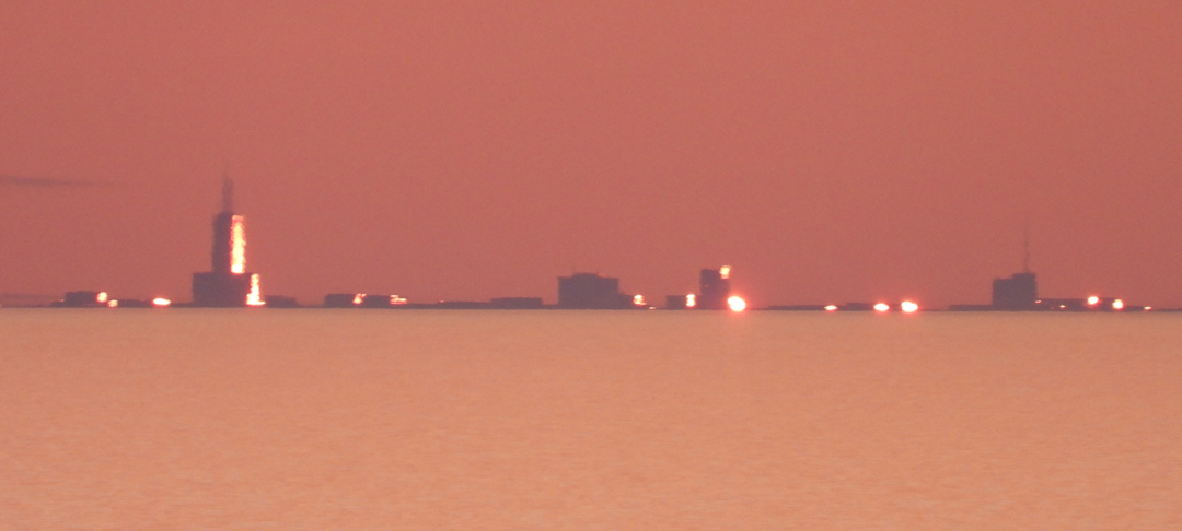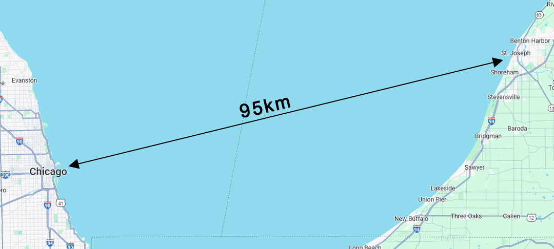 Wenn ich selbst nun also diese Bilder von St. Joseph her über den Lake Michigan hinweg mit der sich an der Glasfront vom (z.B.) Willis Tower spiegelnden Sonne schiessen konnte, dann kann die Sonne nicht wirklich höher sein als ich selbst, oder!?